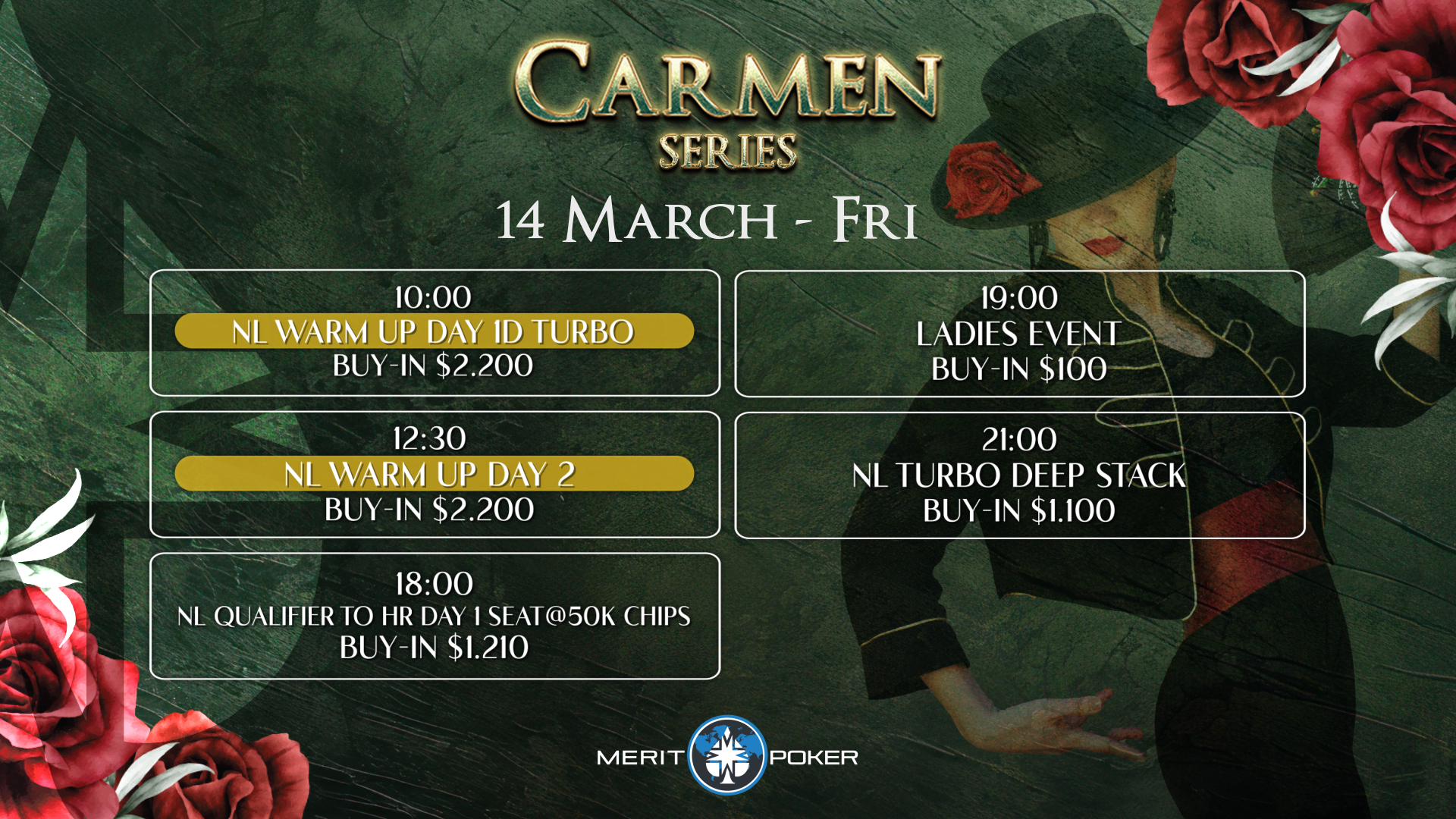 🕖 19:00 – Ladies $100 Tournament